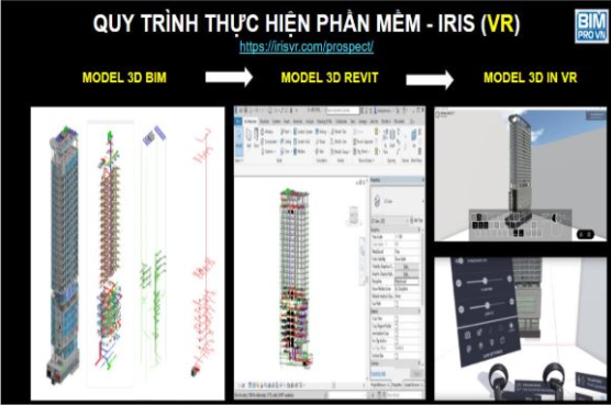 Ngoài việc áp dụng REVIT 3D trong thiết kế, mô hình 3D được đưa vào thực tế ảo (VR – Virtual Reality) thông qua các phần mềm tích hợp với REVIT như Iris Prospect, Symmetry VR giúp cho chủ đầu tư và đơn vị xây dựng có thể cùng trao đổi thông tin theo thời gian thực. Đồng thời kết hợp với công nghệ thực tế tăng cường (AR – Augmented Reality) trên nền tảng phần mềm Unity, Unreal được ứng dụng cho các bên như đơn vị thiết kế và thi công có thể cùng nhau đánh giá, quan sát mô hình 3D ngay tại công trình thông qua việc tương tác trên các thiết bị di động như smartphone, Ipad.