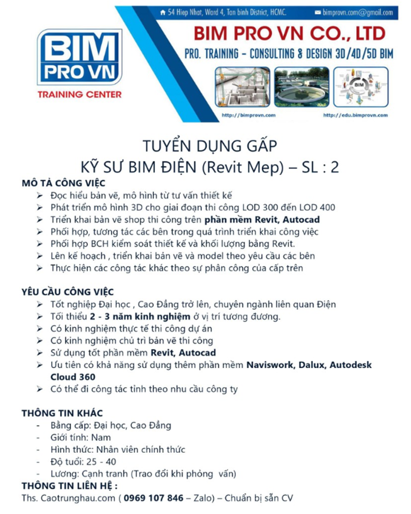 BIM PRO VN JOBSTUYỂN KỸ SƯ – BIM REVIT ĐIỆN – KINH NGHIỆM 2 NĂM Posted on August 17, 2025October 3, 2025 by admin 17 Aug THÔNG TIN LIÊN HỆ: Th.S Cao Trung Hậu (0969 107 846 – Zalo) – chuẩn bị CV admin TUYỂN KỸ SƯ – SHOP CAD CHILLER – LƯƠNG 12 – 20TR – KINH NGHIỆM 2 NĂM Tự Động Hóa Báo Cáo Với AI – Hướng Dẫn Từ A-Z Cho Doanh Nghiệp